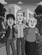 Eichhörnchen und Buddlibär treffen Koni, einem gepiercten Hasen, mit haufenweisem Scheinwissen aus den Illustrierten, der sie als Ortskundiger begleitet.